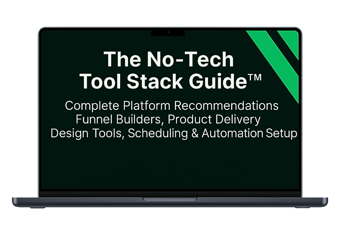 A: That's exactly why we created the No-Tech Tool Stack which helps you build your funnel using drag-and-drop platforms like Carrd, Gumroad, and Canva — zero coding or design skills required. If you can post on TikTok, you can build this.